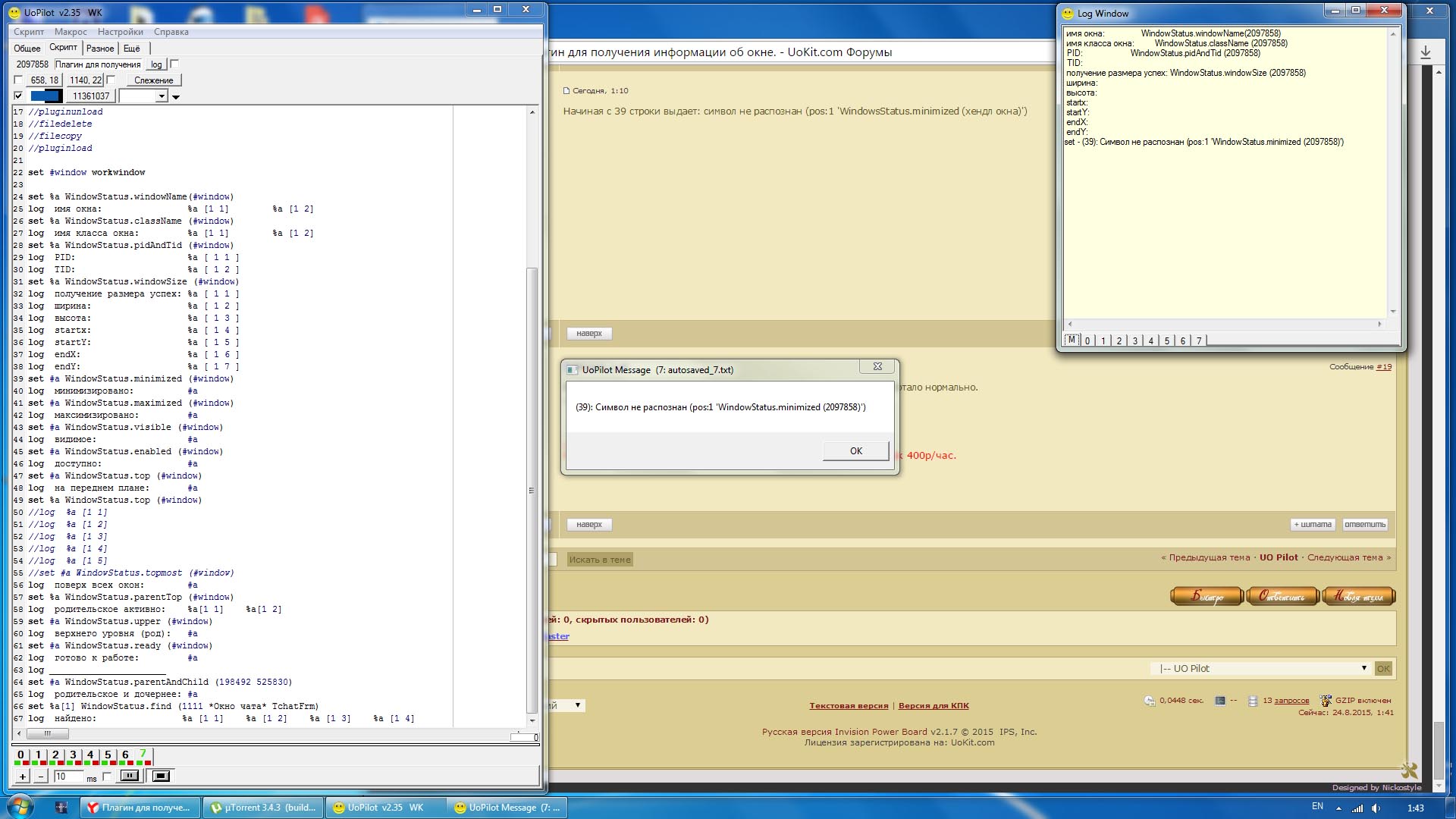 Начиная с 39 строки выдает: символ не распознан (pos:1 'WindowsStatus.minimized (хендл окна)')