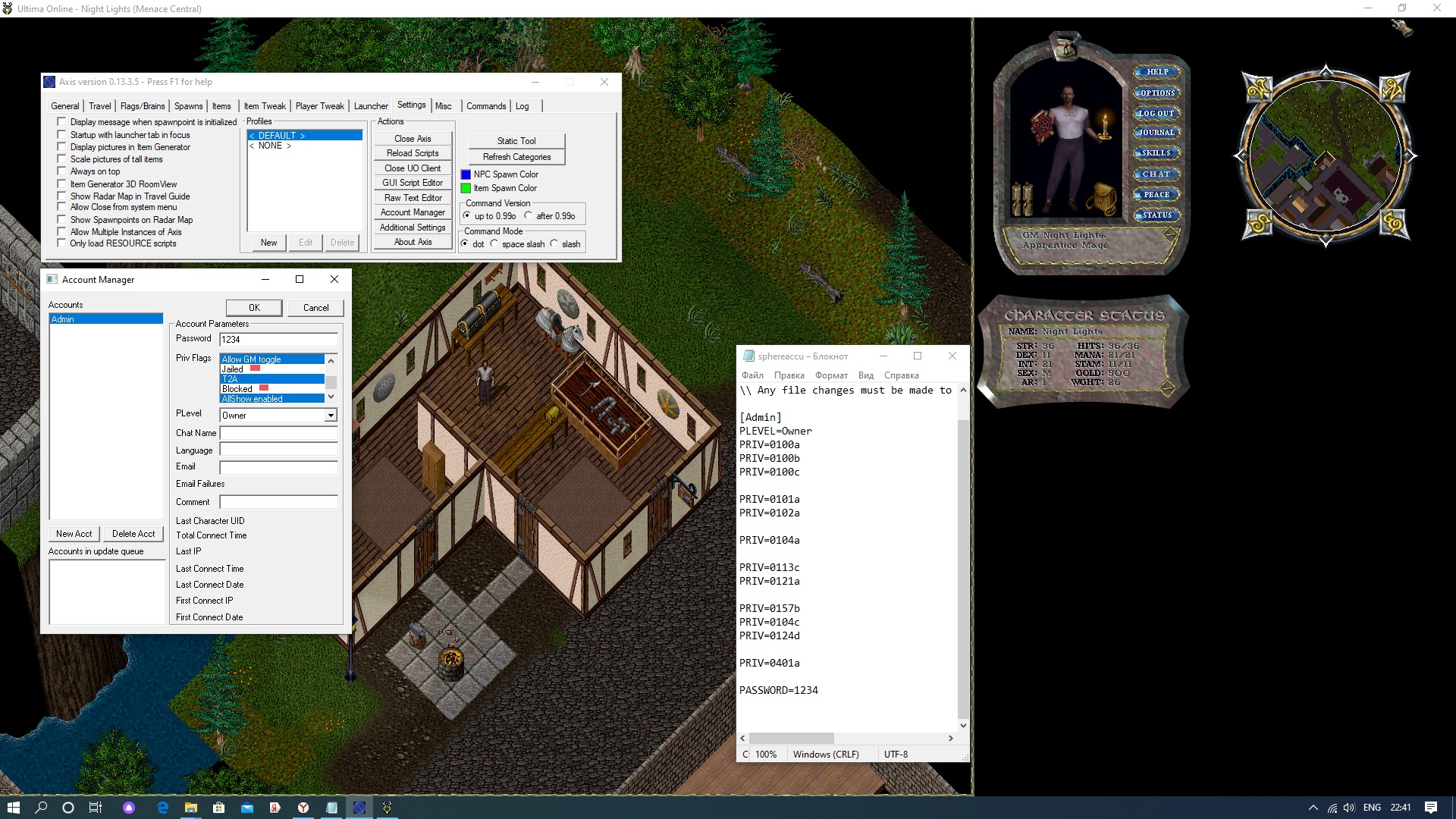 получилось (в самом файле "sphereaccu") указать все привилегии -> кроме последних,