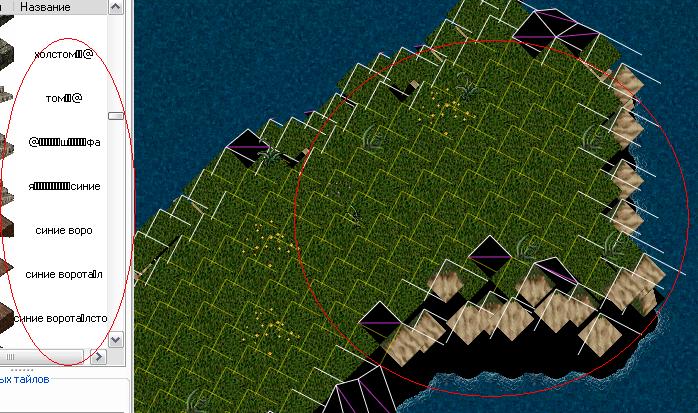 По поводу текста слева.. он не принципиален, т.е. клиентом нигде не используется поэтому то что там написано не играет роли, иными словами туда можно написать что угодно.. данная версия сентрада работает с текстом так как будто он в кодировке ANSI-1251 т.е. стандартной русской 8ми битной кодировкой, крякозябры могут вылезти если вы редактировали тайлдату чем-то что сохранило текст в другой кодировке... Но судя по тому что текст не соответсвует тайлам либо у вас очень кривая тайлдата либо, что скорее всего, вы перепутали версию клиента и сентрада (HS \ SA(она же для клиентов что младше SA)) ПО поводу остального.. косая отрисовка ландшафта также скорее всего вызвана либо крайне корявой тайлдатой либо, что скорее всего, опять темже что вы используете версию сентрада не соответсвующую версии клиента. А вот с сеткой все хитрее, щас узнал что у еще одного человека такойже глюк... честно сказать в чем тут дело щас даже затрудняюсь попробуйте обновить драйвера для видеокарты и GTK c OpengGL