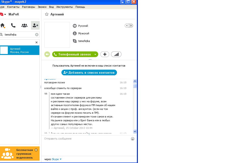 Я эти фантазий могу выложить сюда ( переписка в с... 28.8.2014, 19:28 M0rBiT а temofejka разве его скайп?) 28.8.2014, 19:40 BestSell Да, gods.dragon - левый, это была мега акция - пре... 28.8.2014, 19:58 hioldp Аххахах... Циркач... 122 онлайна !!! Т... 28.8.2014, 21:05 Kanibal