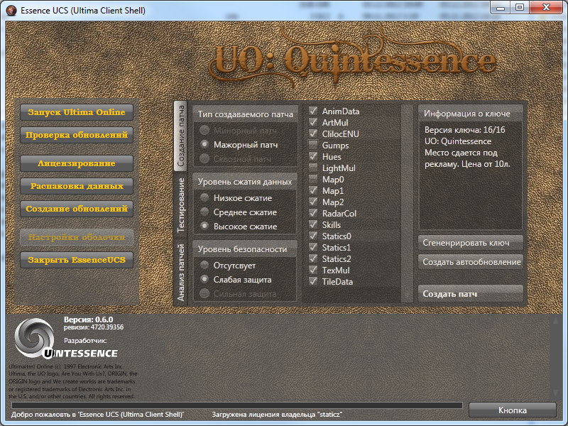 RP сервер UO: Quintessence, а также ПО: EssenceUCS, EssenceUDK, CentrEd+, Fiddler+ и др.Game isn't a dream, it is the reality, reality which is coming while we dream...