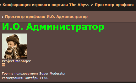 Некий Aboy является неким И.О. Администратором -"Проектным Менеджером" сферы абисса, чье айпи полностью совпадает с пользователем этого форума, т.е. это один из представителей администрации абисса. Это оправдывает его поведение, бред в уши про некомпетентную аналитику, непричастность к стафф группе и накруткам статуса, а так же тотальное игнорирование фактов.