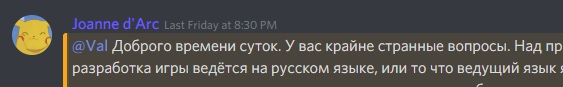 Цитата(Joanne d'Arc @ 8.1.2020, 21:39)  Проект успешно развивается, работаем. Топик полностью удалять запретили. Удалила всё, из-за срача не по теме в стиле " Вика а кем ты там работаешь, а почему форсишь так игру и т.д." Персонаж даже умудрился зайти на канал дискорда , создать срачь с вопросами "А кто вас финансирует ?, А сколько народу работает над игрой?" Хотела обстрагироваться от этого детского сада просто. Проблема была в том, что топик был информативный и в него должна была поступать информация переодически - а если поднимать срачь - то инофрмацию искать в десяти страницах никто не будет. Я обещаю при релизе сделать новый топик с полной информацией в одном сообщении - а дальше уже можно будет обсуждать и задавать вопросы не по существу. Если будет желание потестить в ЗБТ, стукните в ЛС просто.