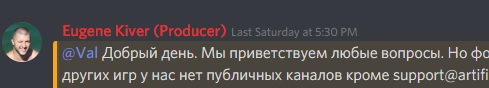 Девы сказали что до релиза ещё потенциально 4 года. Через ~4 года новую тему создашь?)) А вот мои вопросы в Дискорде, которые для Вики являются срачем))  Как видишь, я не спрашивал КТО их финансирует. Я поинтересовался каким методом. Нашли сторонних инвесторов, получили грант или из своего кармана платят... это все простые ответы и ничего в этих вопросах и ответах плохого нету. Мне потом trz написал в ЛС и на все ответил, кроме вопроса о финансировании. Сказал что на это пусть отвечает Евгений и попросил не разглашать ответы на мои вопросы. В итоге Евгений субтильно мне ответил на вопрос о финансировании, используя слово "шейрхолдеры" в своем ответе. И даже если б я спрашивал КТО их финансирует, каким образом это развод срача? Срач развели умники типа тебя, к которым эти вопросы никак не относились и вы на них даже не пытались ответить. Причем я максимально корректно вам отвечал, хотя меня это так достало что я, в итоге, ливнул сервер. Нельзя тебе с комьюнити общаться, если от таких простых вопросов тебя так бомбит. Учись у Евгения как это надо делать. Твой первый же ответ начался с твоего мнения о моих вопросах. Просто посмотри на разницу. Вот это ты мне начинаешь давать ответы:  А вот это делает Евгений:  Если ты реально хочешь им помочь, тебе стоит задуматься об этом.