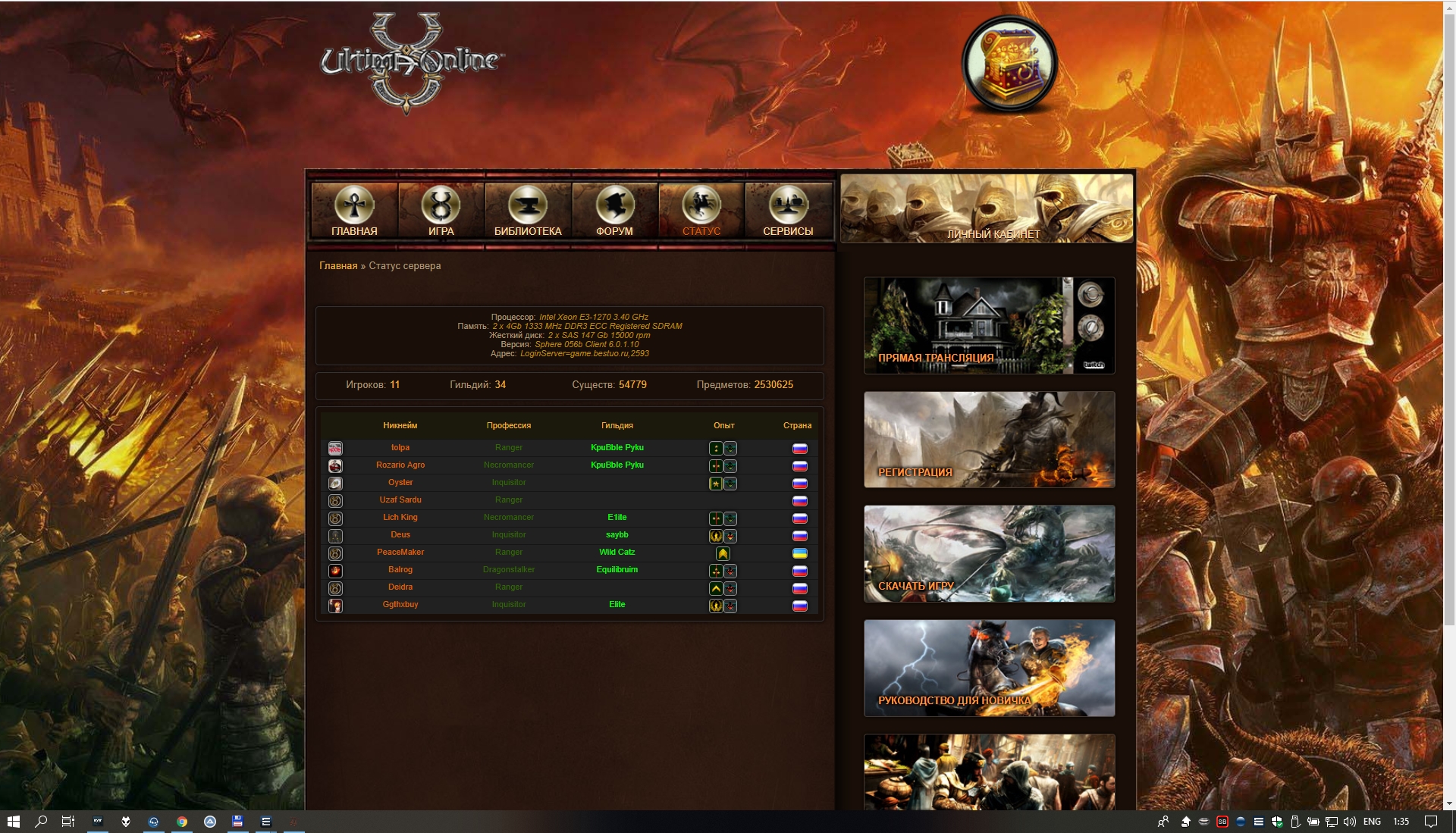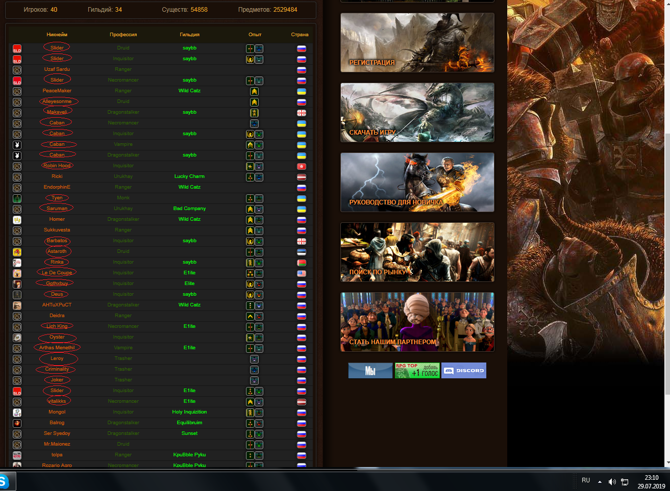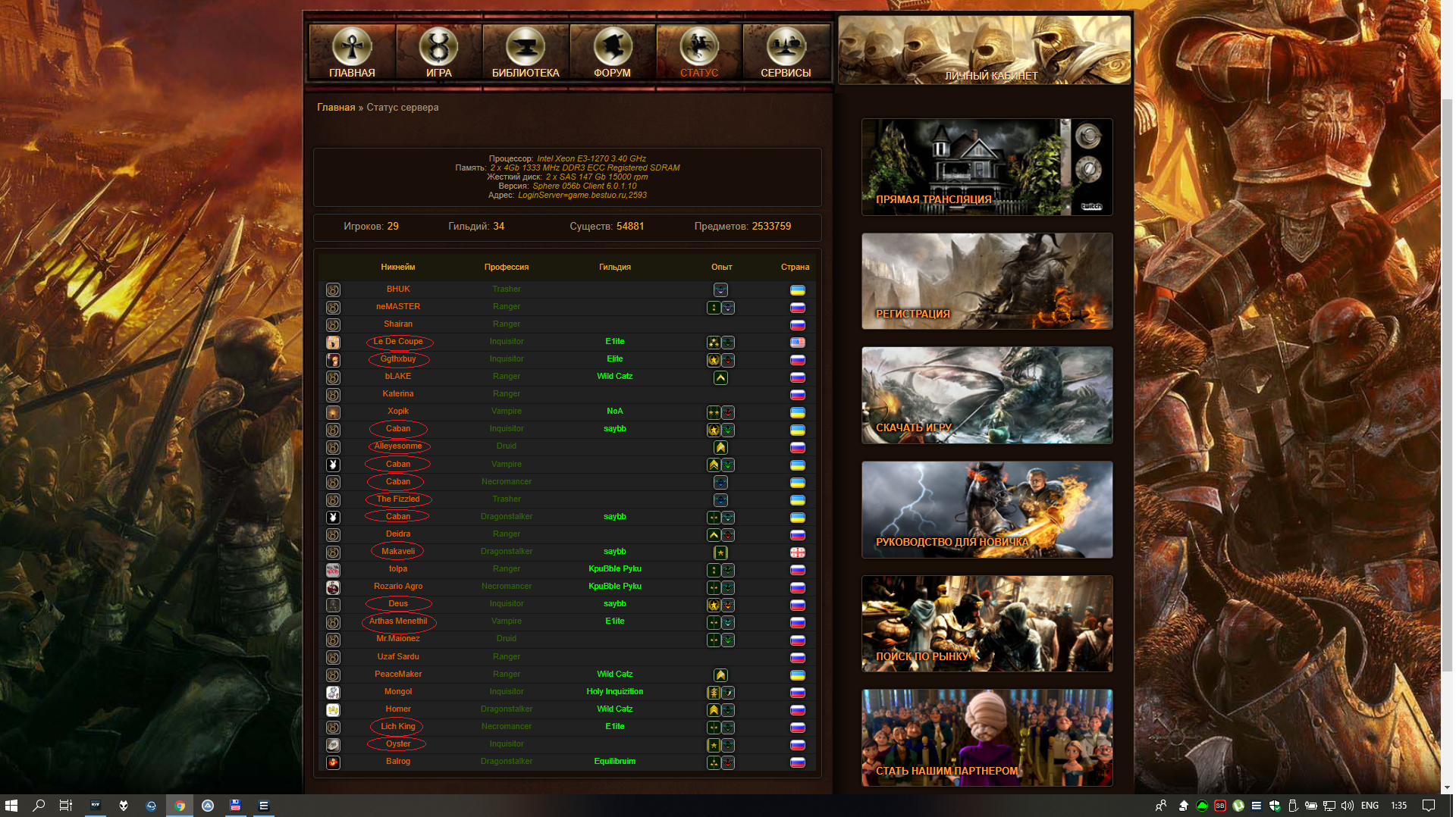 кстати в тот же временной период лета в 15-16-17 годов, онлайн был в разы выше и варочки были до 5 утра. из 29 чаров, вашей педостаи 9 рыл. 2 года почти прошло -) а онлайн стал протухать тогда, когда ВРа админ забанил, без разбору, так и не оправится. Ну а ты жди варок с норм болэнсом, вот в евке ССР делают умную непись, что с ней приходится иногда драться, скоро на бесте будешь вариться против неписи за посты -) иди за варнера -))