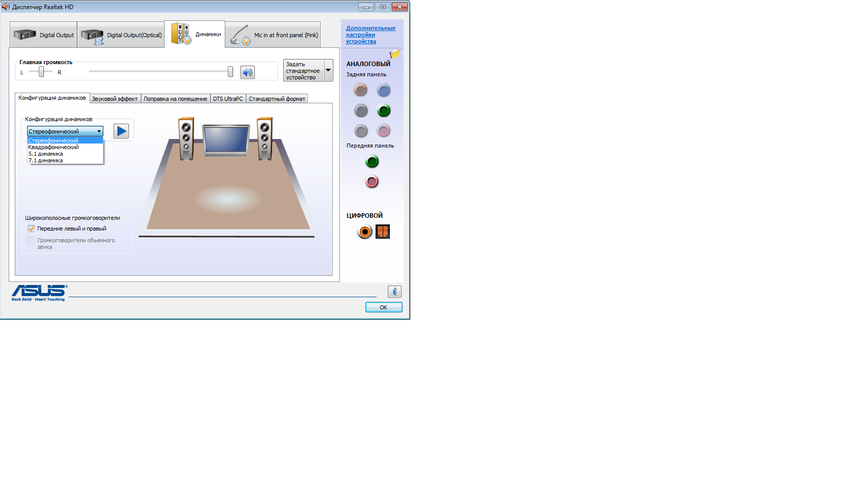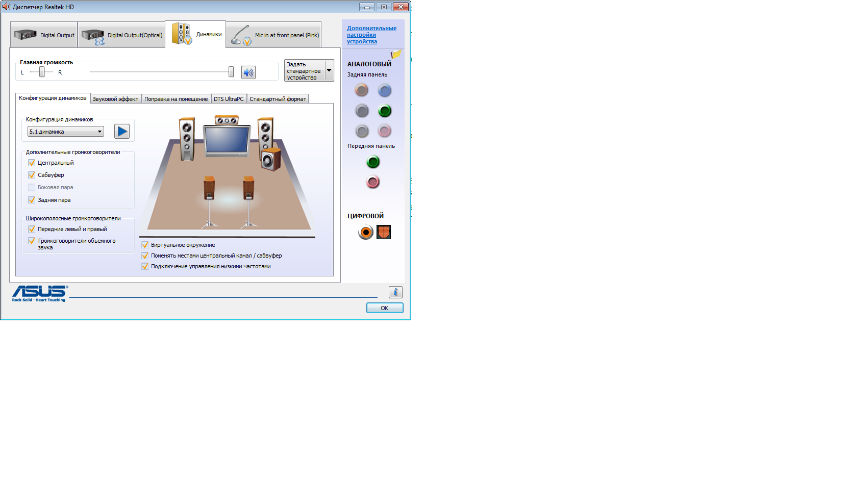 Через что подключена акустика? У вас 5.1?