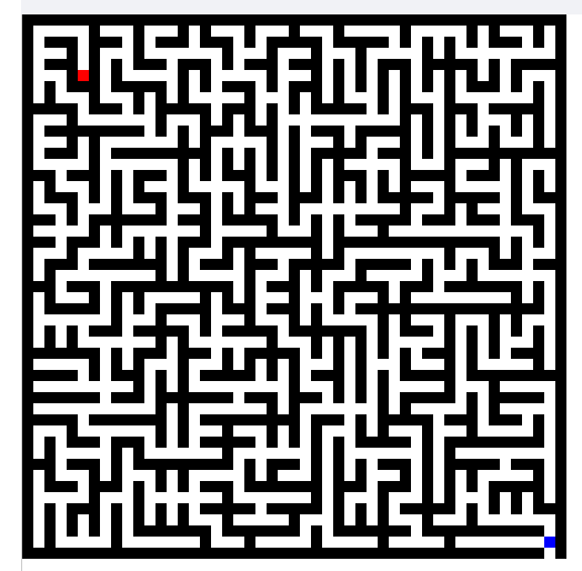 -- ход for i = 1, #path do kleft (path[i][1], path[i][2]) end time_paint_path = os.clock() - time_start - time_create_path - time_create_map log ("Рисование маршрута:".." "..time_paint_path) log ("Всего затрачено времени:".." "..time_create_map + time_create_path + time_paint_path) elseif #start == 0 then log ("Точка A не найдена") else log ("Точка B не найдена") end Чуть подправил. Теперь быстрее работает. На маленький лабиринт уходит 50 мсек. Тест на лабиринте 601*601 пиксель : https://youtu.be/9aQd-s86yFk