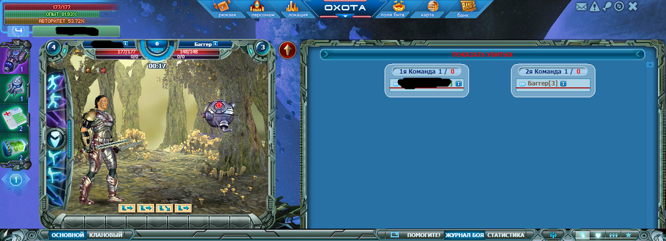 Скрипт желательно нужен с отслеживанием хп и ожиданием его восстановления. Сложность в отслеживании хп - если после боя нажимать "охота", то полоска не заполняется, нужно обязательно заходить в мешок, потом в охоту снова и уже отслеживать (думаю трабл браузера). С этим поконопатиться и решить не трудно.