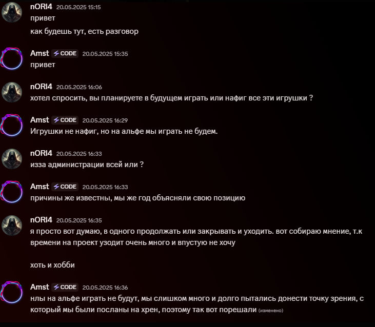 Цитата(wad @ 29.8.2025, 20:30)  🔥 PvP ALFA - новый сезон🔥 1 сентября 2025 года открывается свежий виток битв и славы.- ⚔ Жёсткий PvP без компромиссов - 🏹 Чистый адреналин, кровь и добыча - 👑 Только сильнейшие войдут в хроники 🌑 Ultima Online PvP Alfa- 📅 Старт сезона: 01.09.2025 Discord: https://discord.com/invite/sm5NwCCsxSWeb: http://pvp-alfa.net/ Не советую там играть , этому челику не суждено вобще было с рождения быть админом , он роняет серваки как куры несут яица , только что был у него проект ХЛ он его закрыл , высосал донаты мелкие , проебал народ , щас делает то же самое , у него была альфа люди играли вёбывали время , он щас сделал опять вайп! Если играть у этого долбаёба то это каждые пол года вайпы и падающий серер ! Люди не хотят там играть , вот скрин про него ! Кстати он засерал уо кит что это мусорка , а сам тут шас рекламирует свою парашу